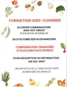 Le Centre communautaire Jean-Guy-Drolet est à la recherche de deux (2) personnes pour une formation rémunérée afin d'obtenir un certificat d'aide-cuisinier.